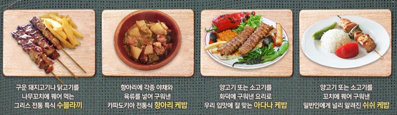 ▷ 터키 4대 전통 특식 수블라끼, 항아리 케밥, 아다나 케밥, 쉬쉬 케밥, 그리스 양갈비 특식 제공